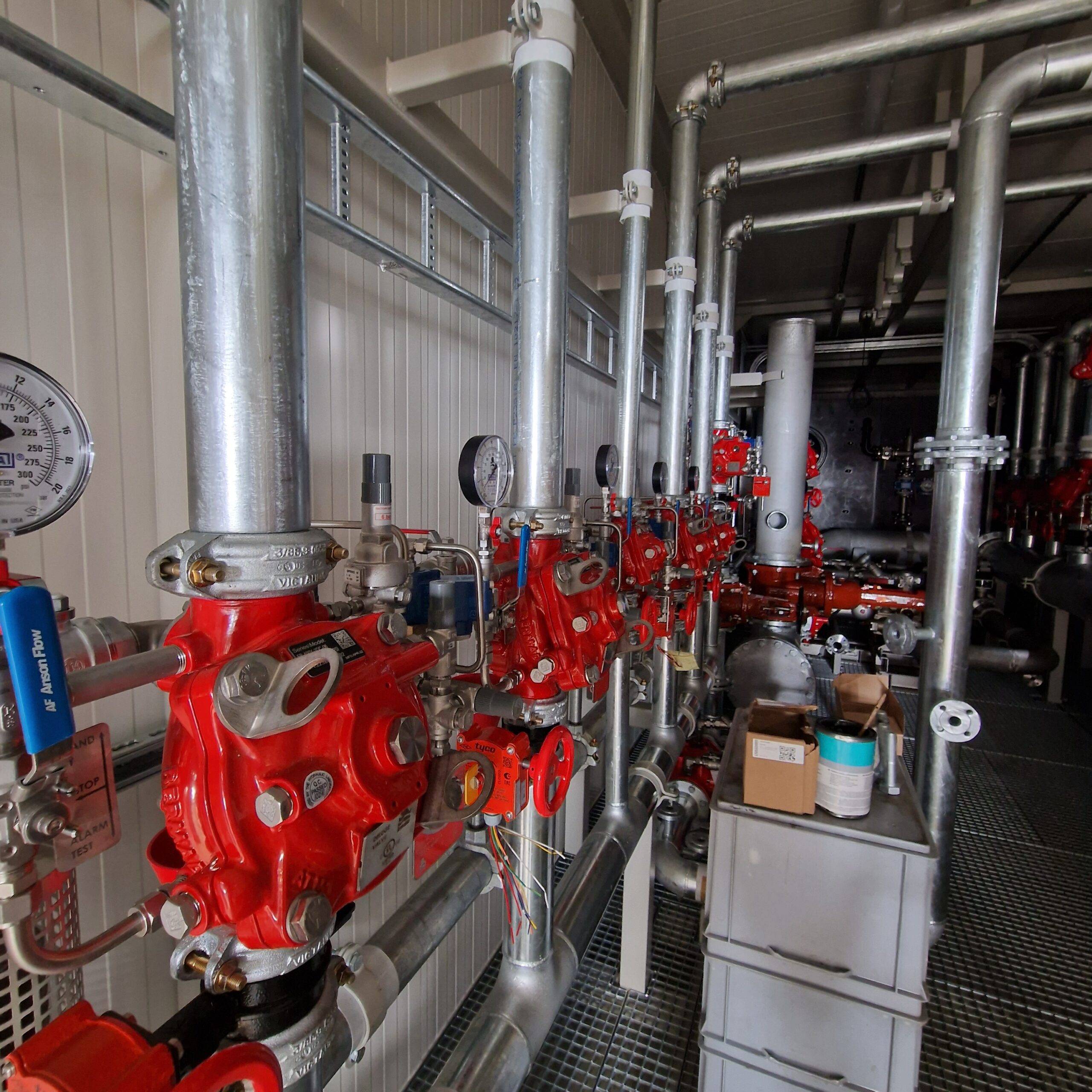 A modern office building equipped with state-of-the-art fire detection and suppression systems, showcasing the company's commitment to advanced fire safety solutions.